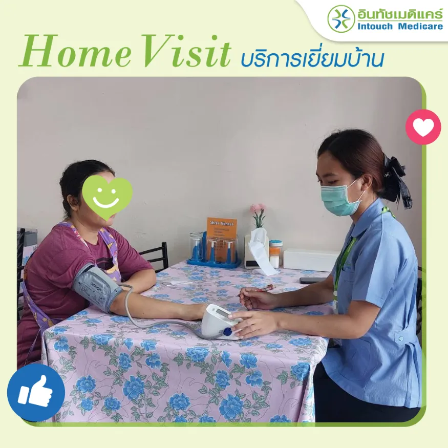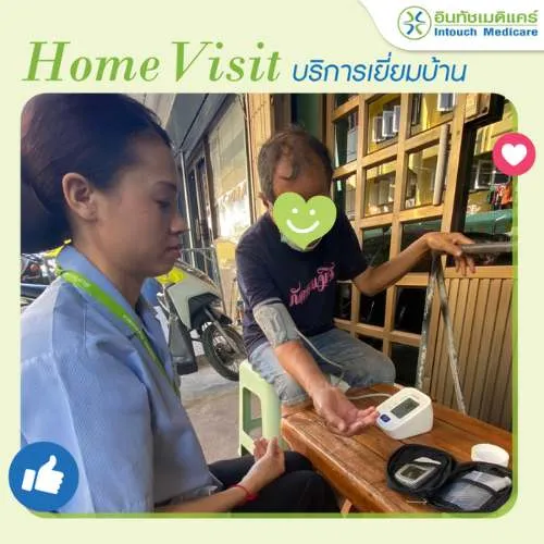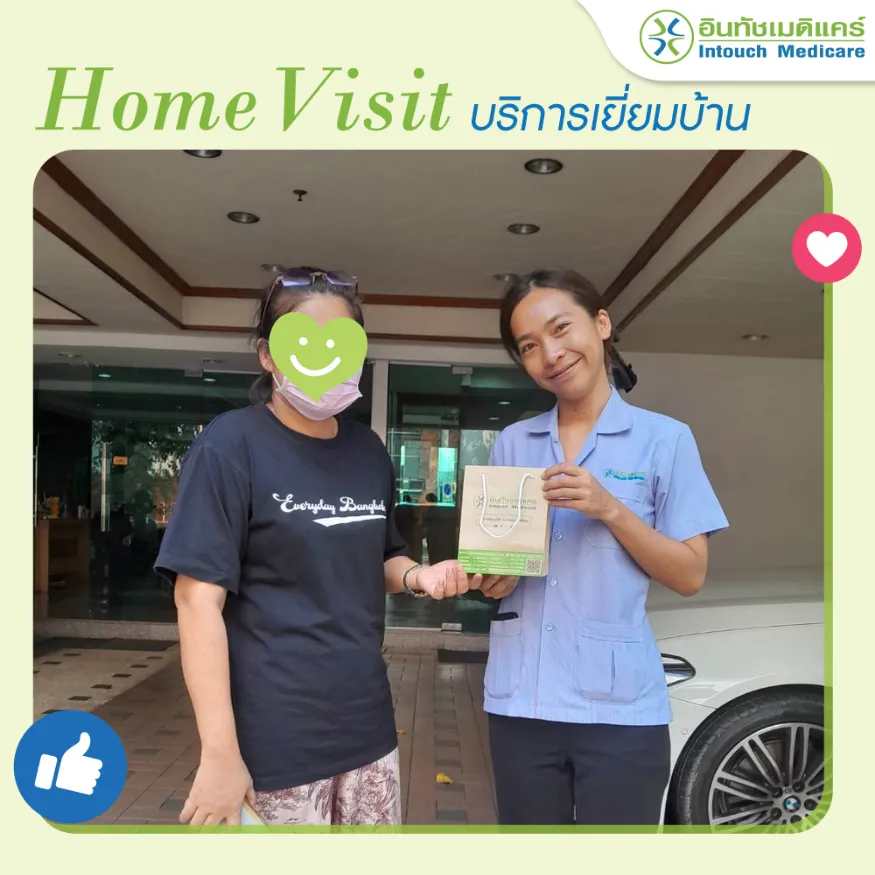 อินทัชเมดิแคร์ใส่ใจสุขภาพของคนไข้ทุกคน เรามีสาธารณสุขให้บริการเยี่ยมบ้านคนไข้หลังรับบริการกับอินทัชเมดิแคร์ เพื่อติดตามสอบถามอาการคนไข้อย่างต่อเนื่อง และให้คำแนะนำในการกินยา การปฏิบัติตัวเพื่อให้คนไข้มีสุขภาพที่ดีขึ้นค่ะ